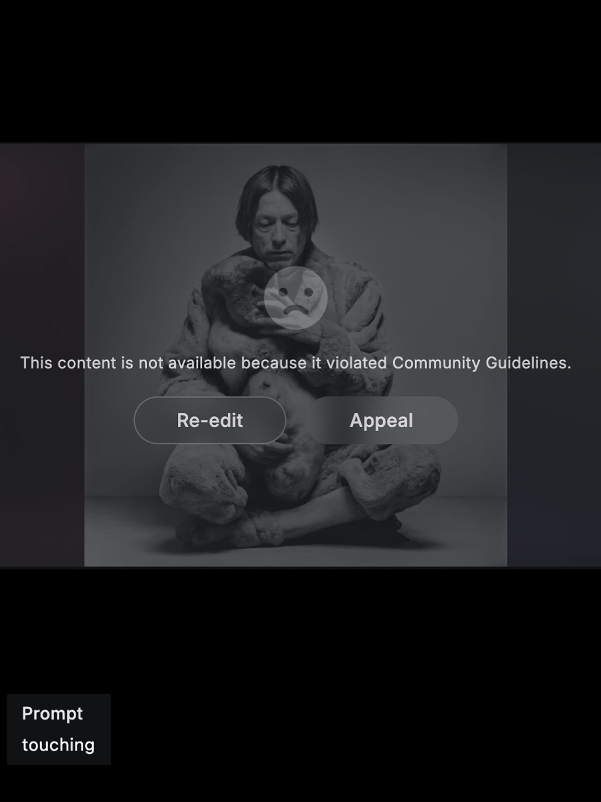 It’s not a moral or artistic judgment — it’s a symptom of systems that can’t read nuance, irony, or metaphor. This limitation actually reveals something important about your work: it exposes where art exceeds what the machine can process. The very thing that gets rejected — the distorted, the hybrid, the non-normative body — is precisely the space where critical art happens.